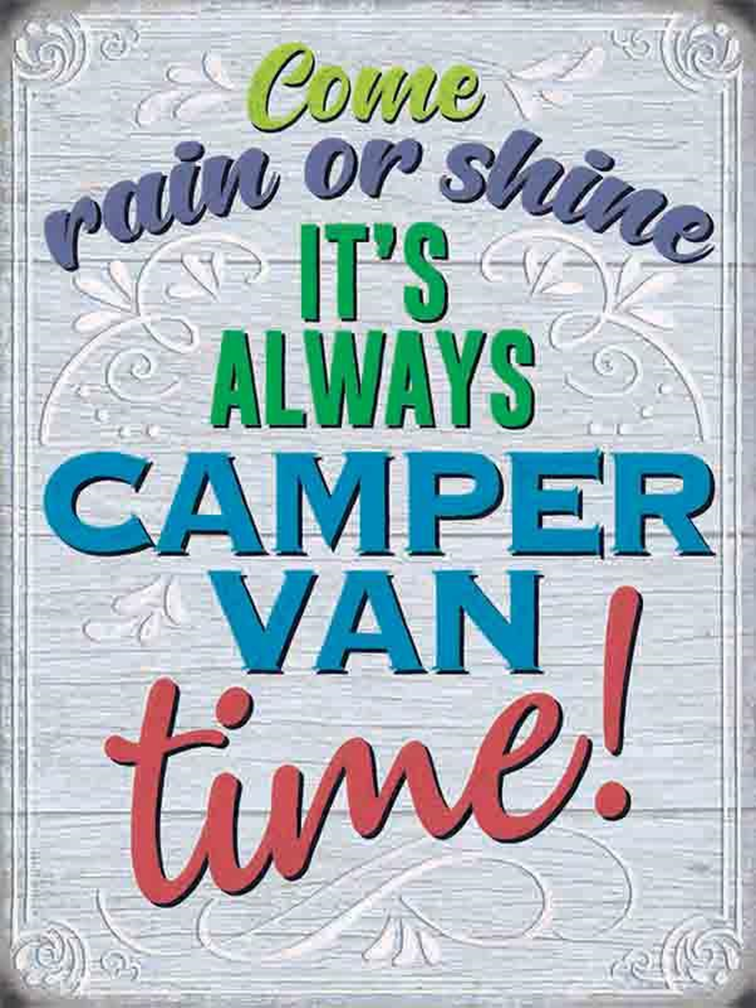Camping & Caravanning Metal Sign Come rain or shine its always camper van time, is a great decorative plaque for anywhere in the home. or makes a fantastic gift for Camping & Caravanning lovers.